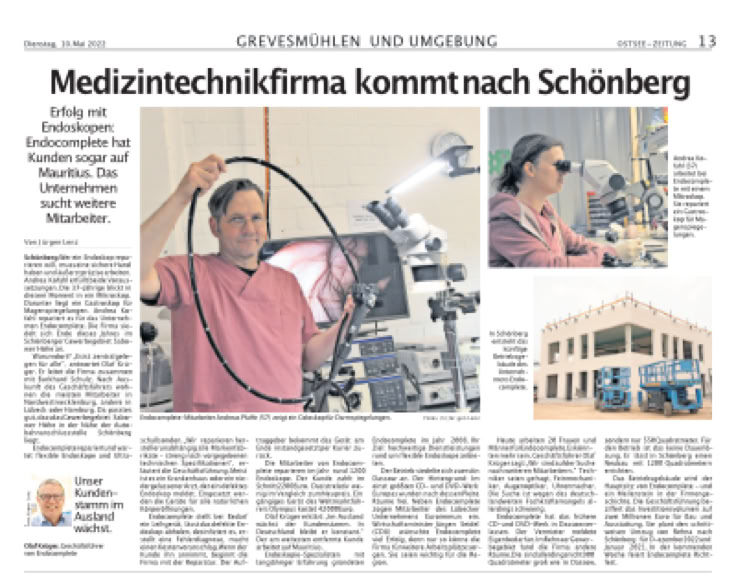 Diejenigen die am 10. Mai 2022 nicht die Gelegenheiten hatten den Artikel über EndoComplete in der Ostsee-Zeitung zu lesen, finden den kompletten Artikel nebenstehend noch einmal in Digitaler Form.